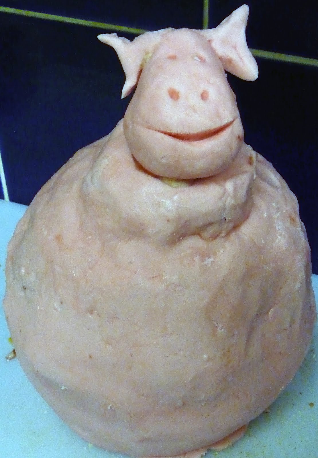 The actual sponge didn't turn out too badly - but co-op didn't have any ready made icing and didn't have any liquid glucose either. So I did the best I could with what I had but the icing was a bit too crumbly and just kept getting stuck to my work surface. Plus I hadn't cut the sponge quite flat on the bottom so the top half kept sliding off the bottom where the jam had got runny.