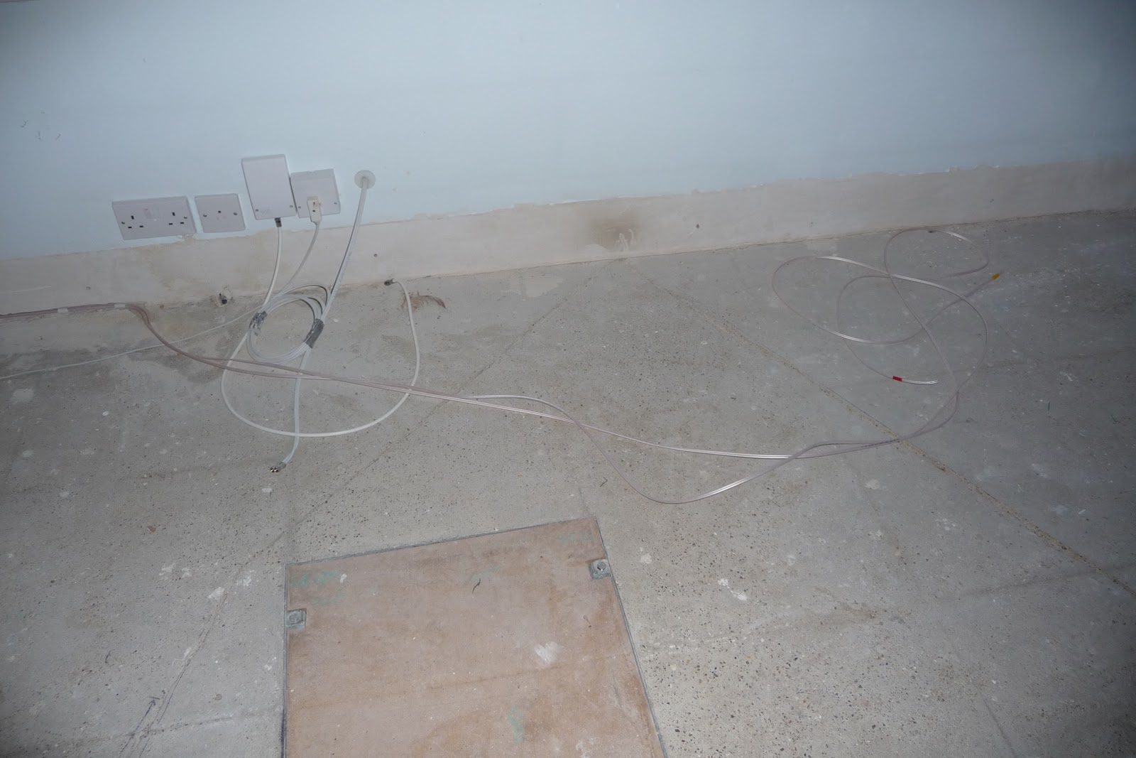 The next job was to channel a route through the floor for the speaker cables for the rear speakers and to get the cable into the kitchen for the speakers in the kitchen. This has created mountains of dust.